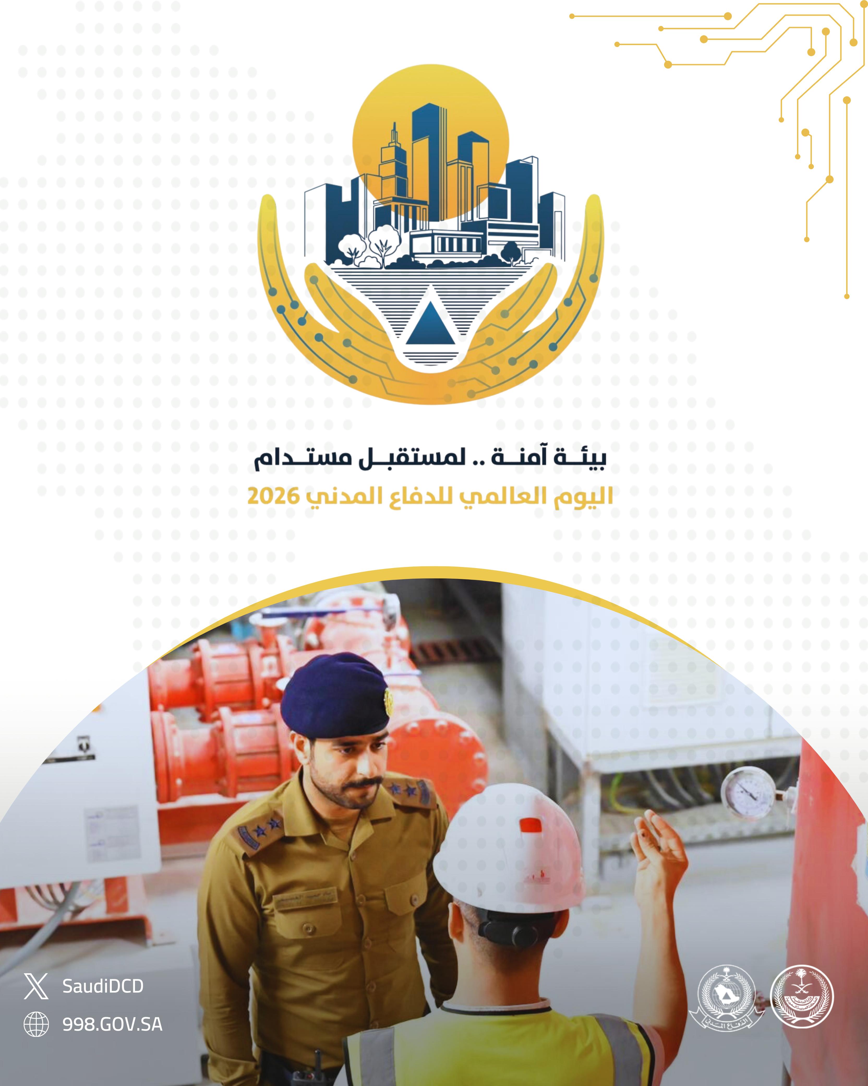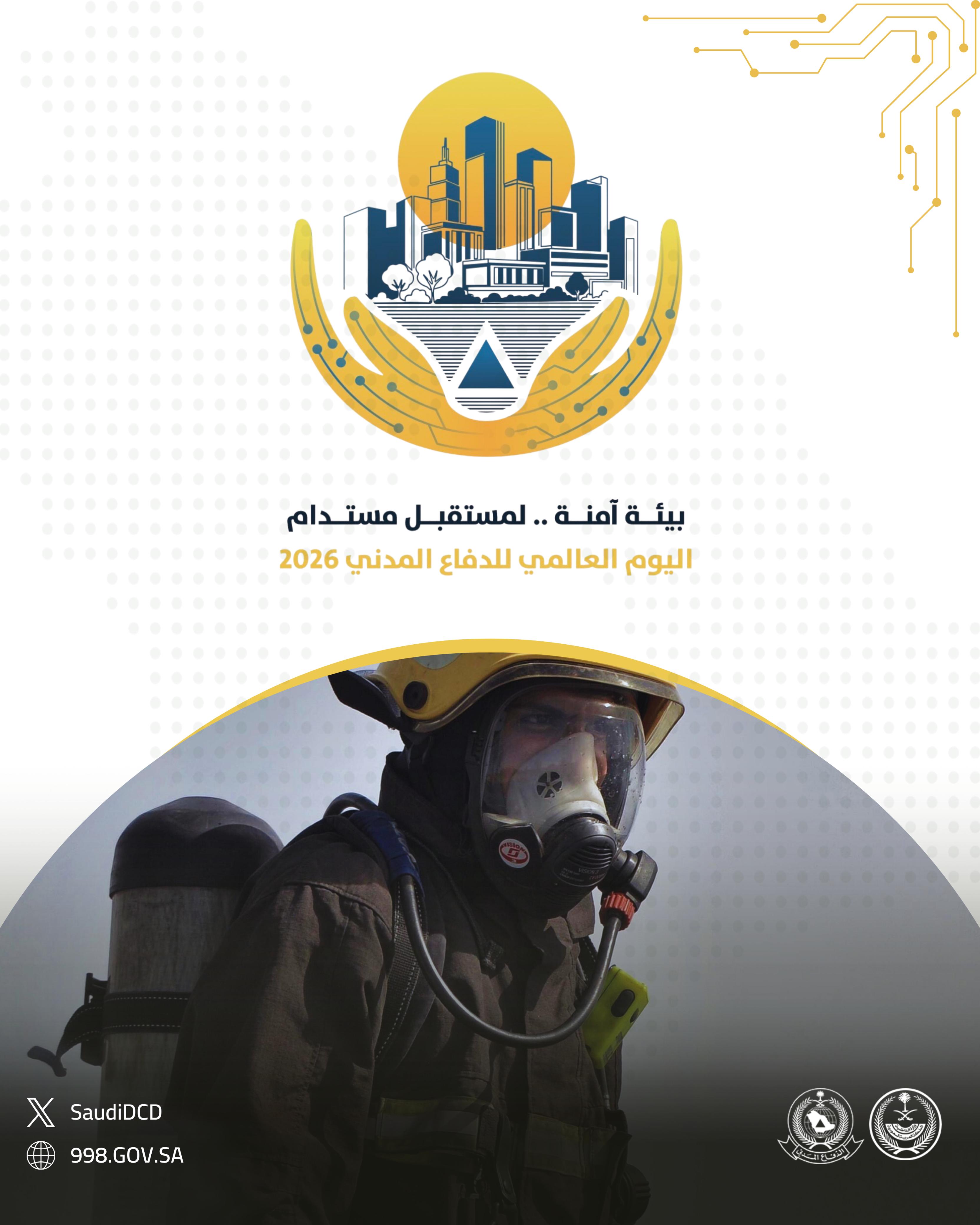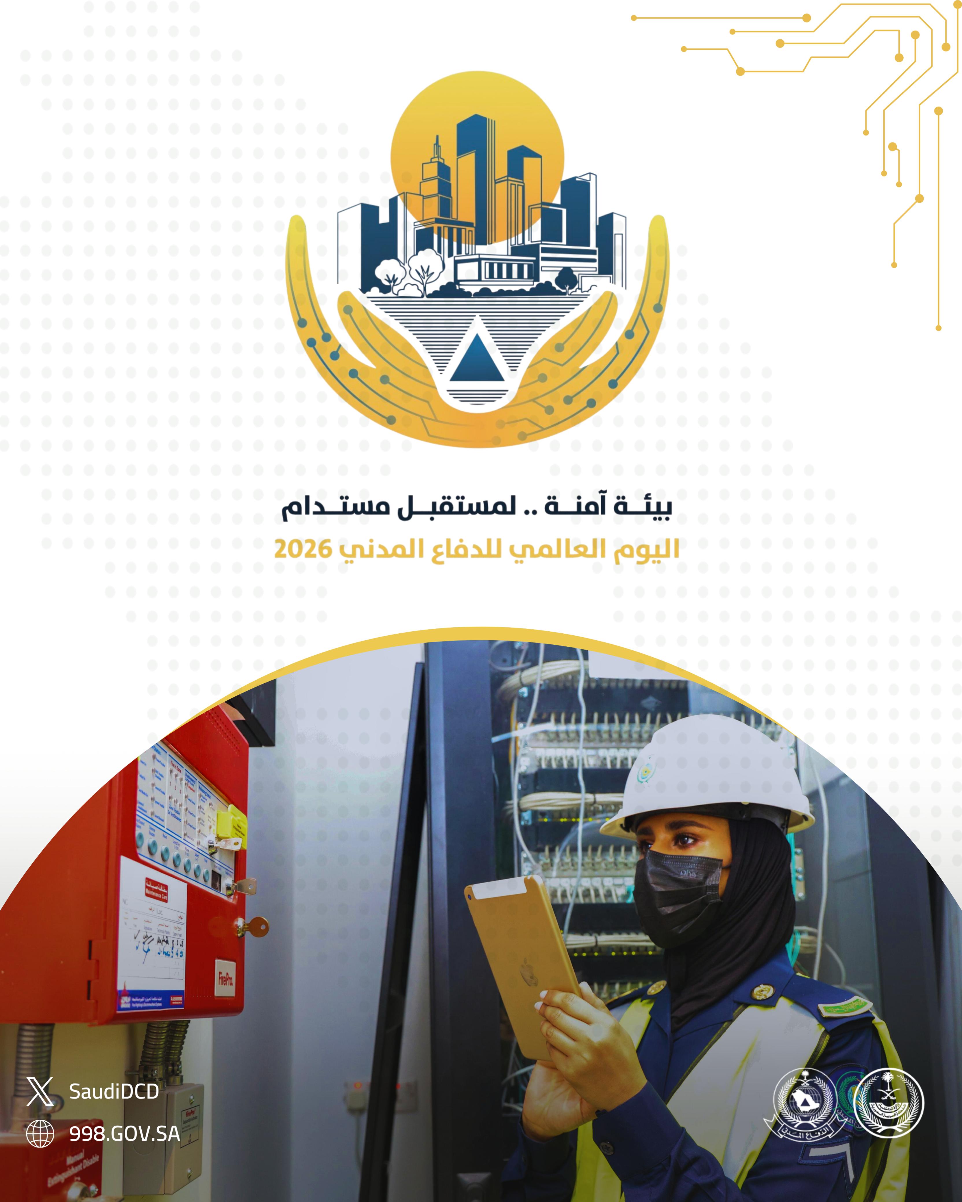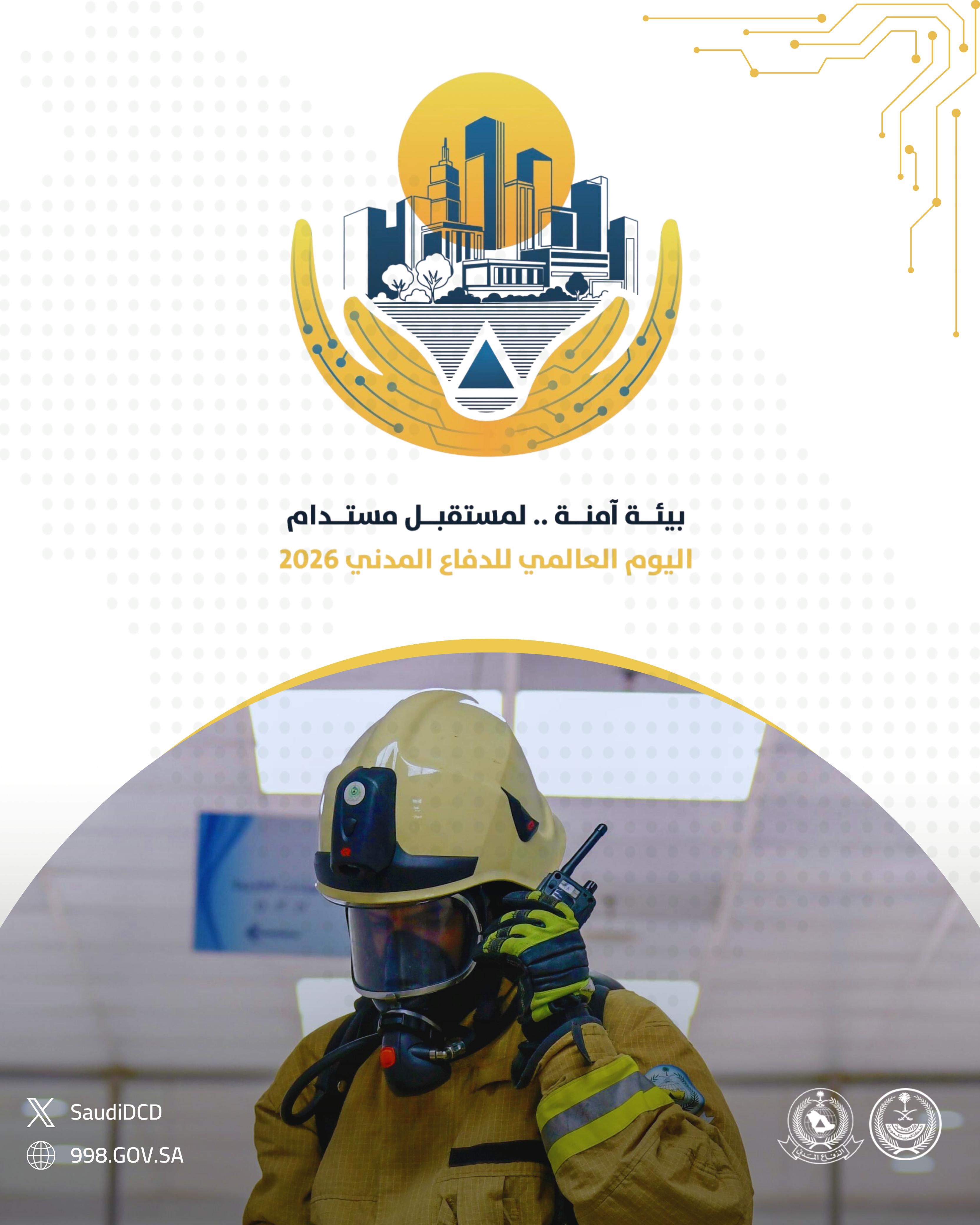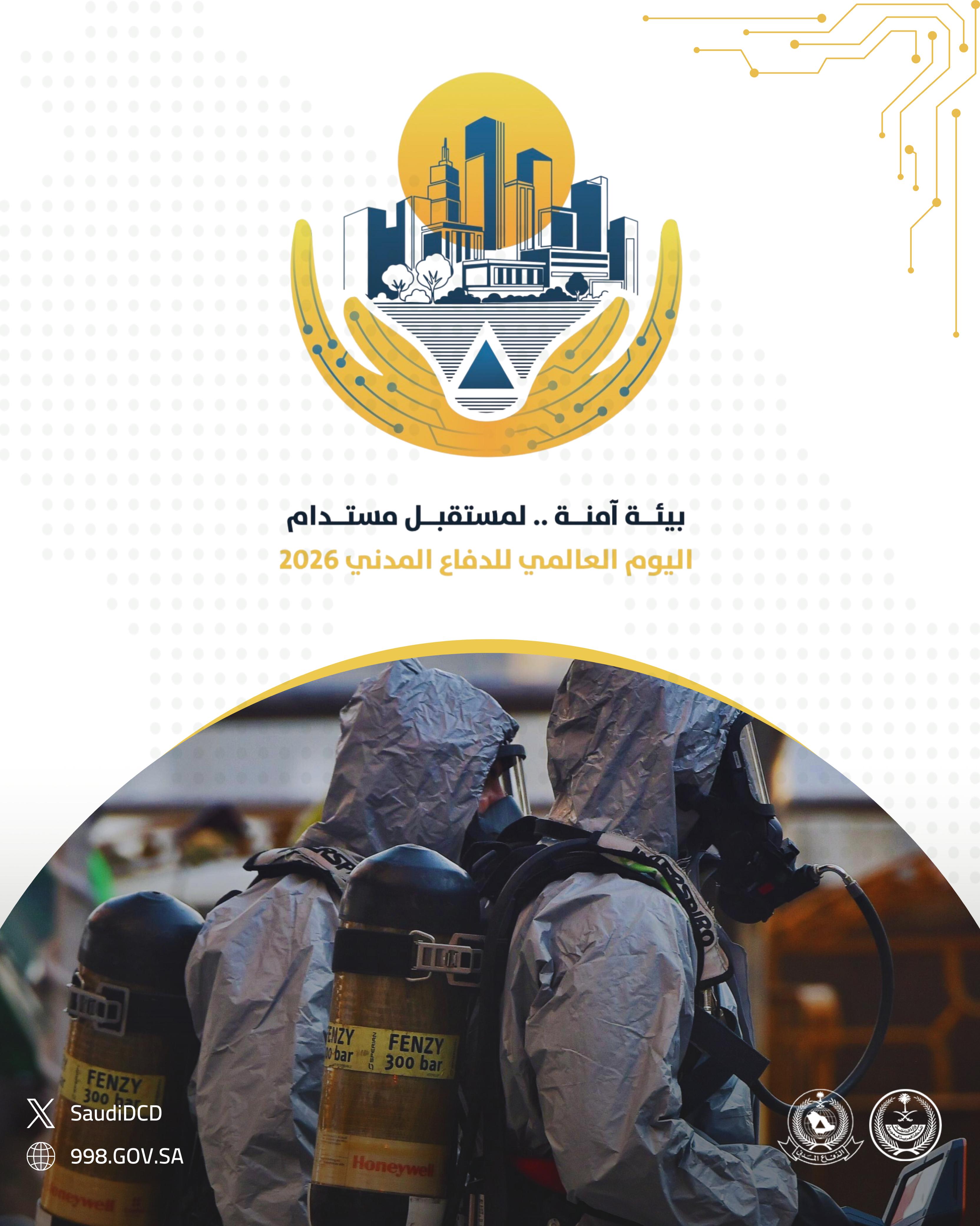 في إطار اليوم العالمي للدفاع المدني (1 مارس)، قامت الجهات المختصة في المملكة العربية السعودية بإعداد ونشر سلسلة من الملصقات التوعوية المخصصة لموضوع عام 2026: «إدارة المخاطر البيئية من أجل مستقبل مرن ومستدام». وتبرز هذه المواد دور خدمات الدفاع المدني في الوقاية من المخاطر، وحماية السكان، وترسيخ ثقافة السلامة.