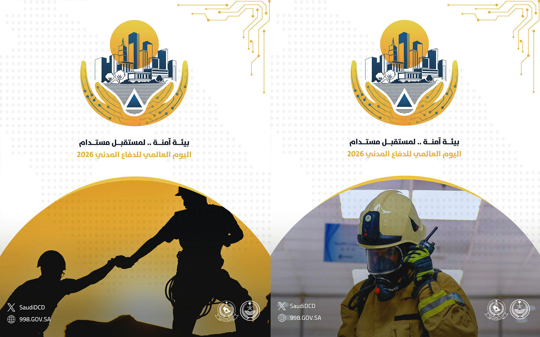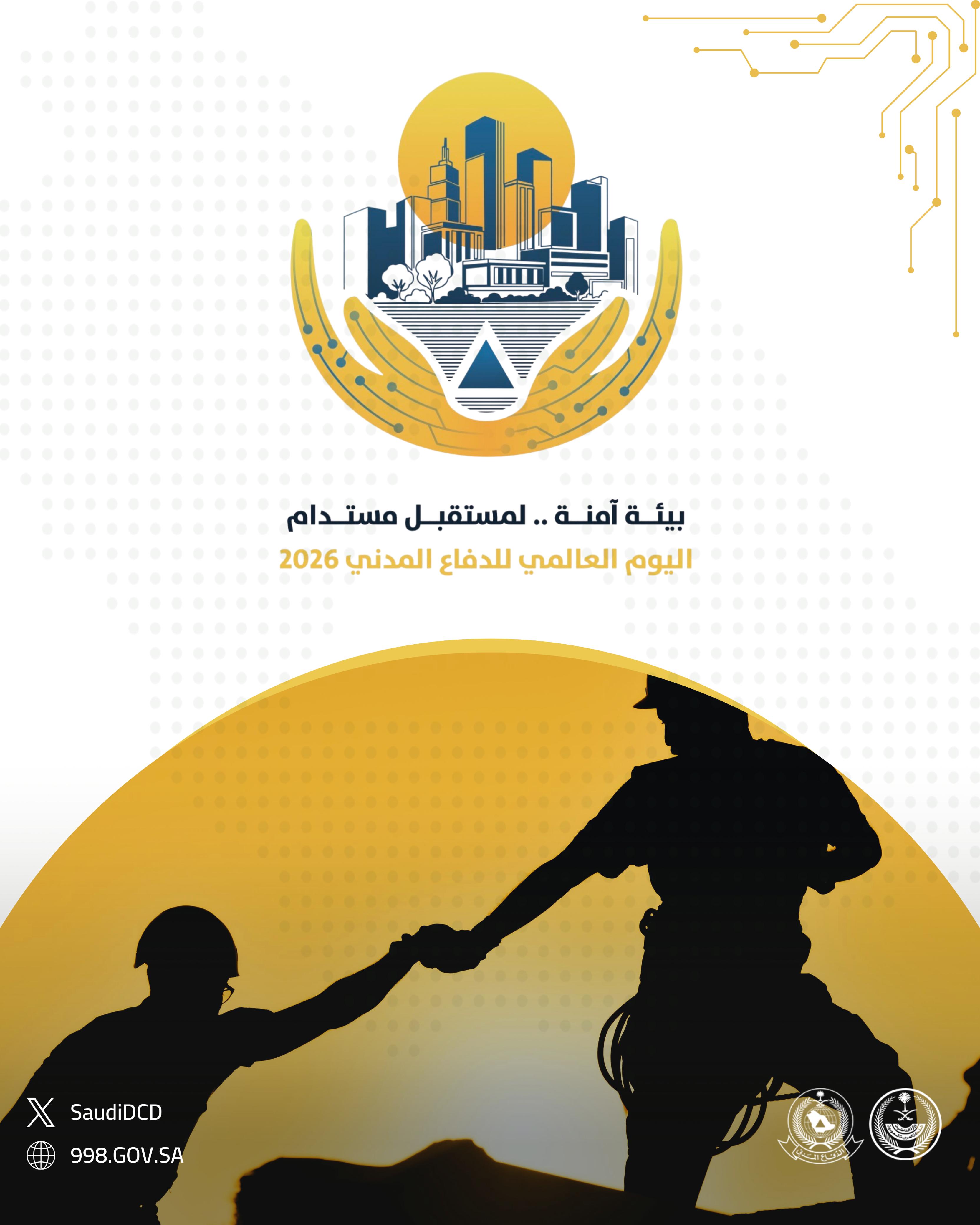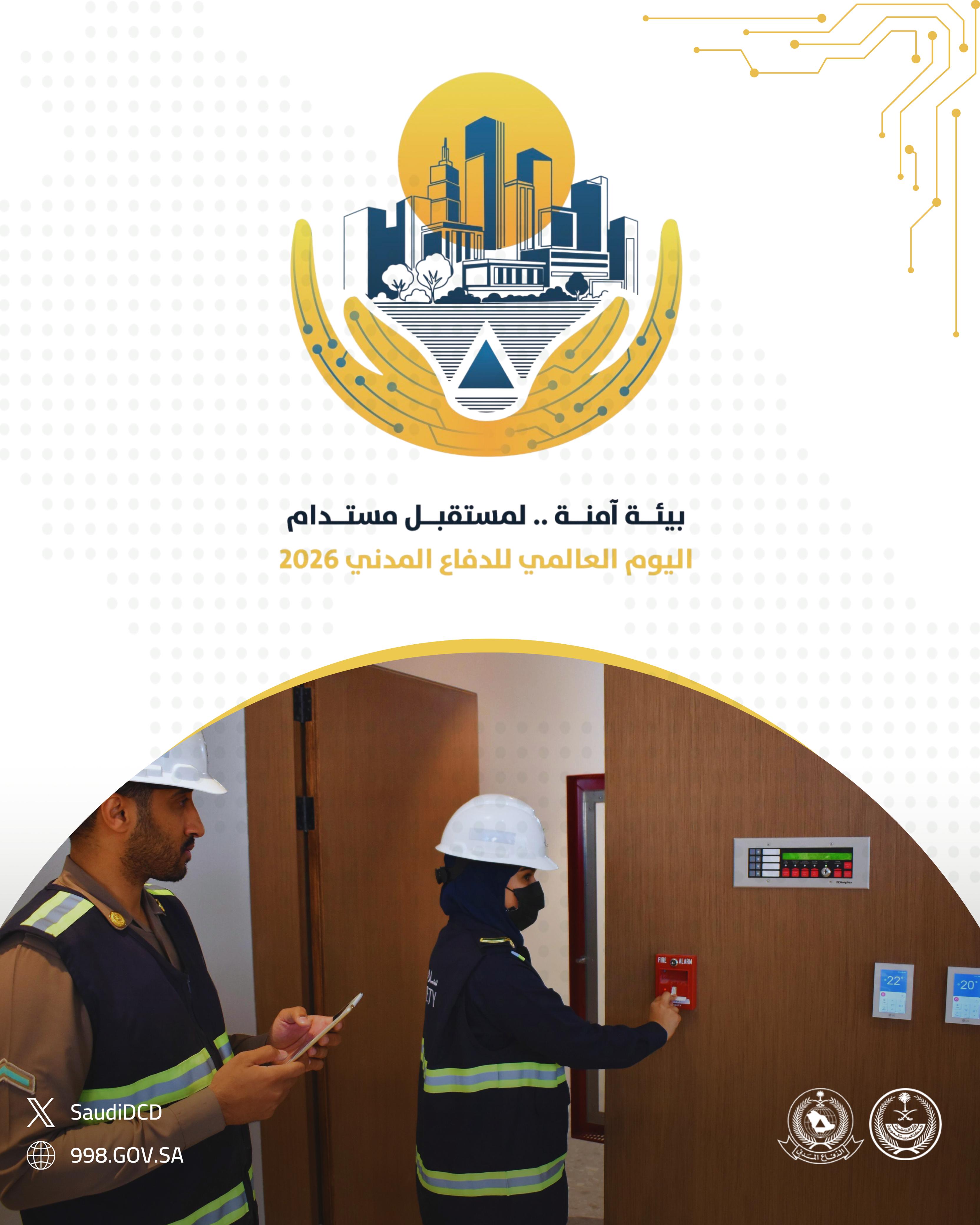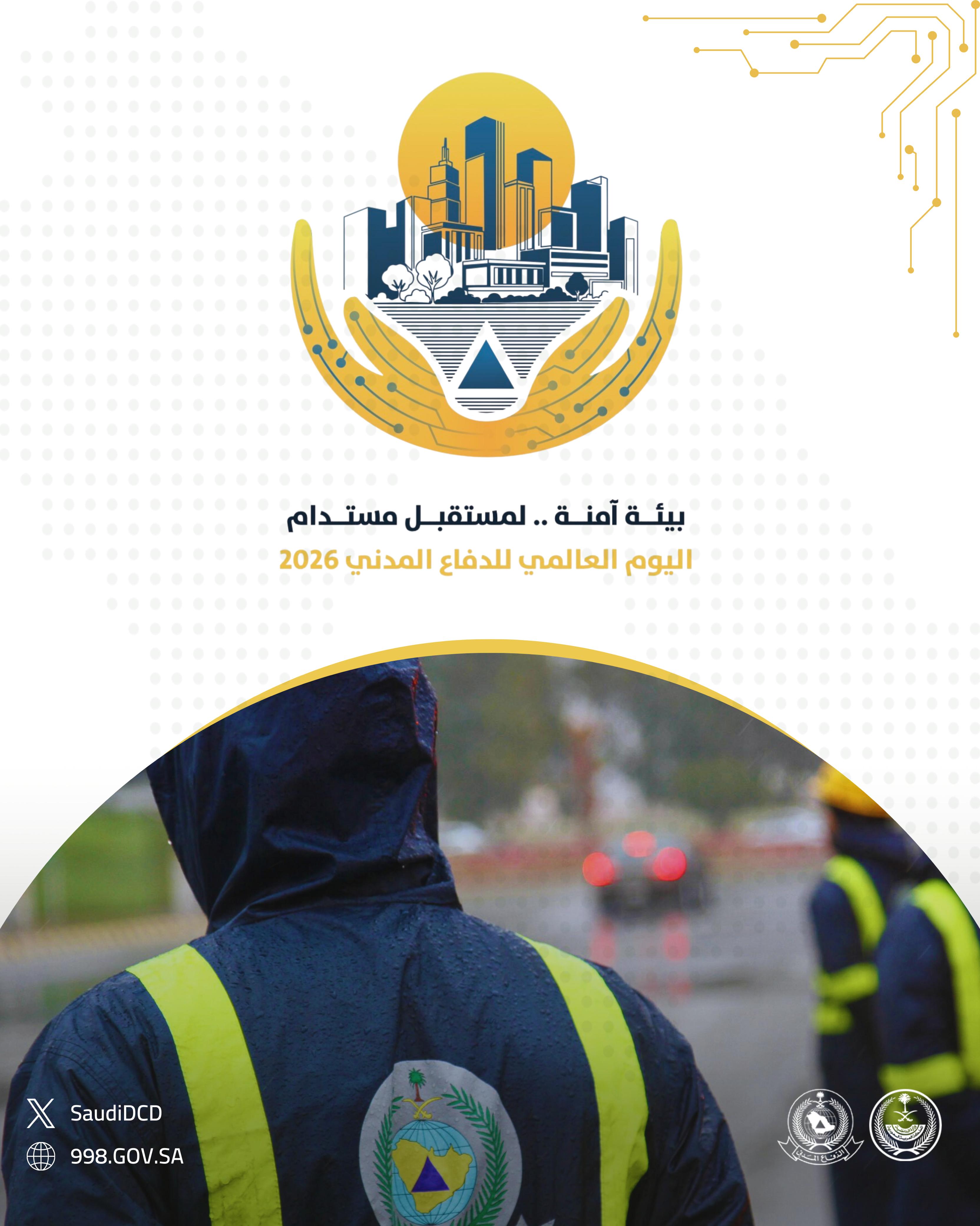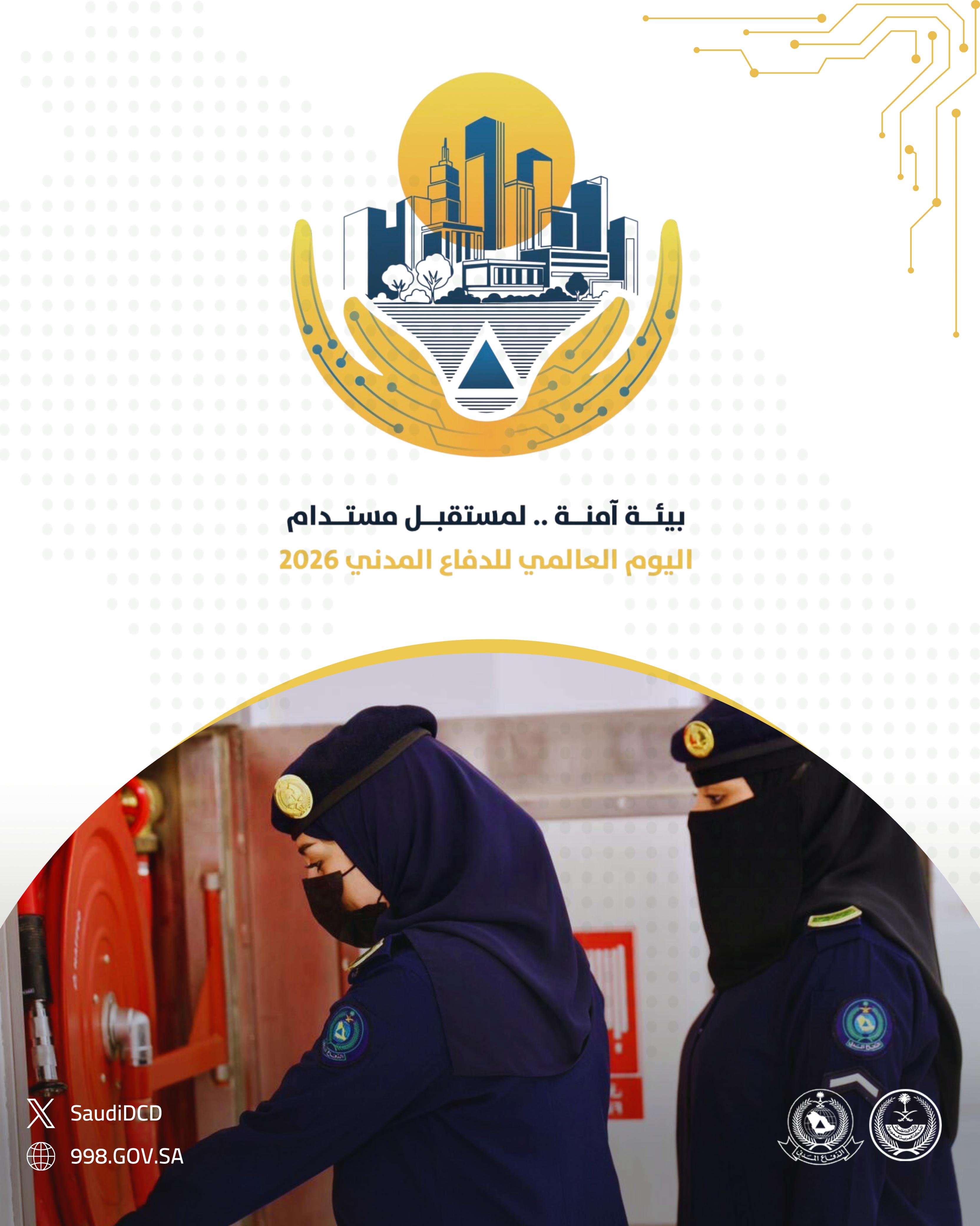 في إطار اليوم العالمي للدفاع المدني (1 مارس)، قامت الجهات المختصة في المملكة العربية السعودية بإعداد ونشر سلسلة من الملصقات التوعوية المخصصة لموضوع عام 2026: «إدارة المخاطر البيئية من أجل مستقبل مرن ومستدام». وتبرز هذه المواد دور خدمات الدفاع المدني في الوقاية من المخاطر، وحماية السكان، وترسيخ ثقافة السلامة.